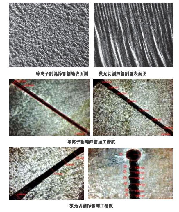 等离子割缝管是有高频等离子束在水基复合工作液中切削加工的,没有热应力,不会出现激光割缝管的微裂纹、爆孔等现象,其机械强度明显高于激光割缝管。