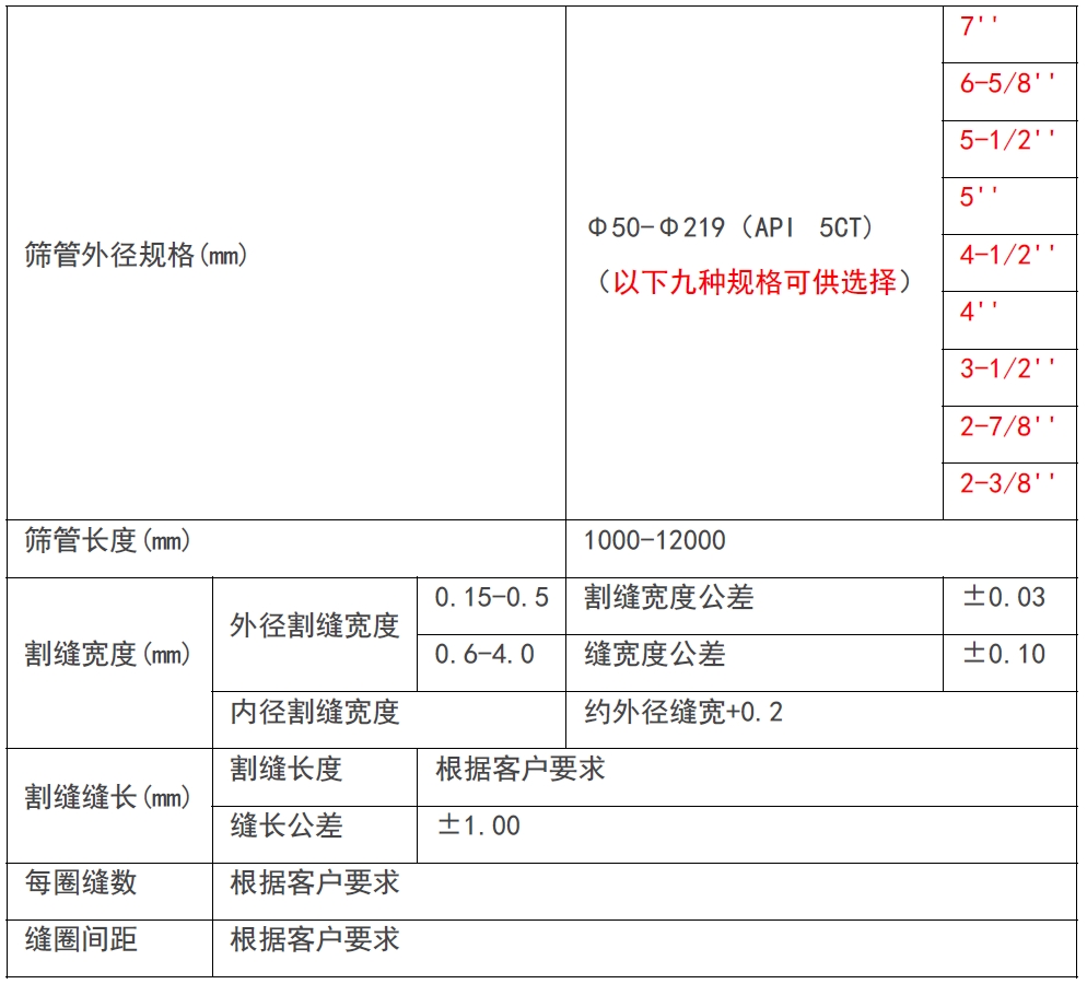该筛管适用于直井、斜井、水平井、分支井的下列完井方式: ■割缝衬管完井 ■裸眼筛管完井 ■裸眼砾石充填完井 ■套管砾石充填完井 ■管外封隔器衬管完井等 适用Q/SH1020 2239-2022 割缝筛管通用技术条件
