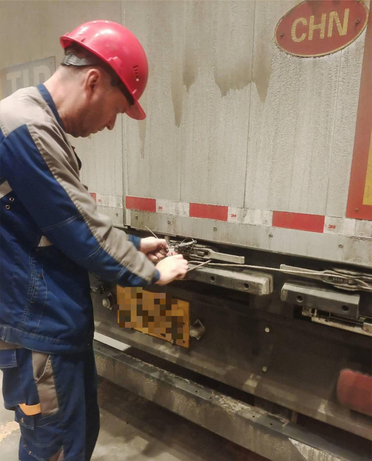 2024年11月9日抵达客户在圣彼得堡的工厂卸货地点,俄方接货人员现场拆封